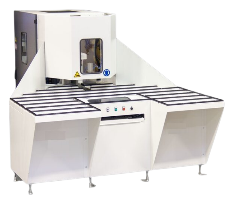 CNC corner cleaning machine with maximum processing speed and precision thanks to state-of-the-art linear technology. Controlled via a Windows-based system with patented software for visually creating and editing programs, no CNC knowledge required. The machine can be equipped with up to 19 tools.